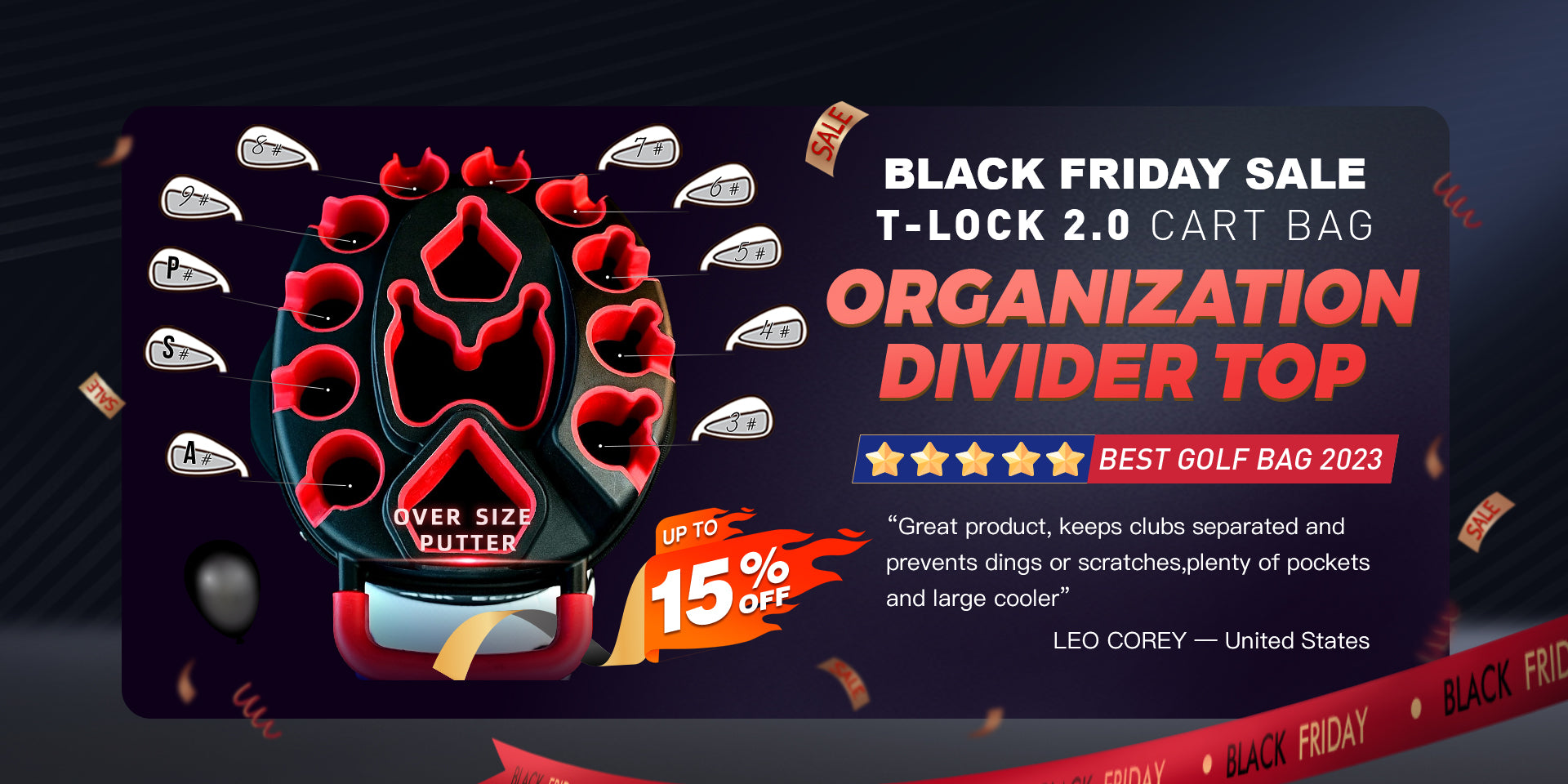 Ask Echo 2024 T-LOCK 14 Way Organizer Dividers Golf Soundless Cart Bag / Black