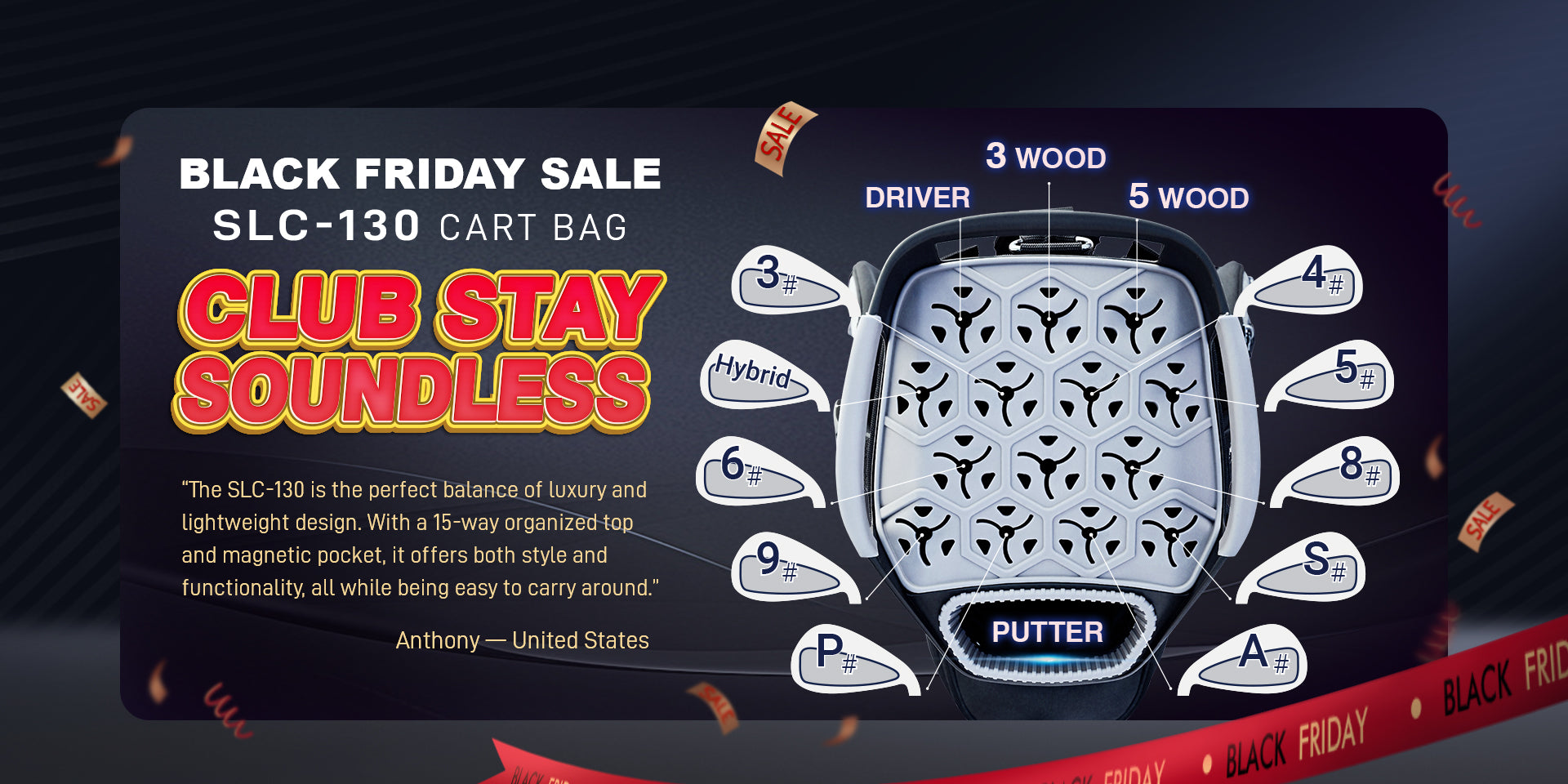 Ask Echo 2024 SLC-130LE Luxury 15 Way Full Length Dividers Golf Soundless Synthetic Leather Cart Bag