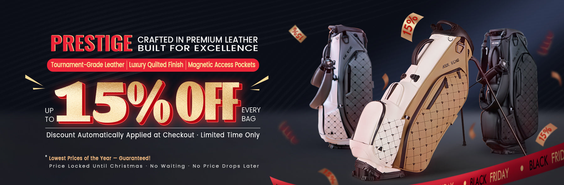 Ask Echo 2025 Prestige-14 Way Full Length Hybrid Leather Stand Bag / Black