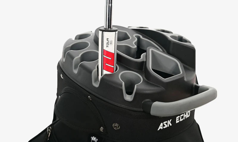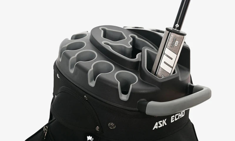 The ASK ECHO T-LOCK Golf Cart Bag features a 14-way full-length divider system that offers exceptional club organization and protection. Each club rests securely in its own slot — no rattling, no damage, and no guessing where your favorite club is.
