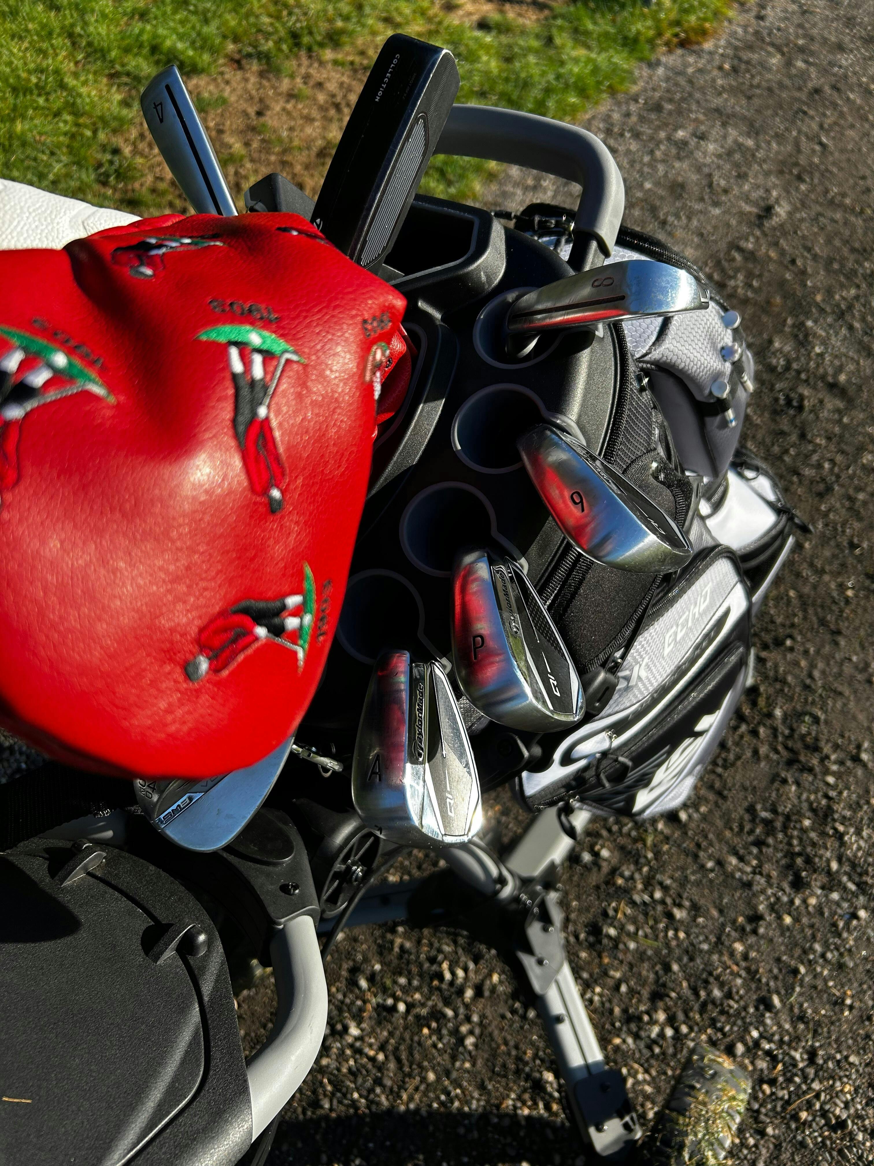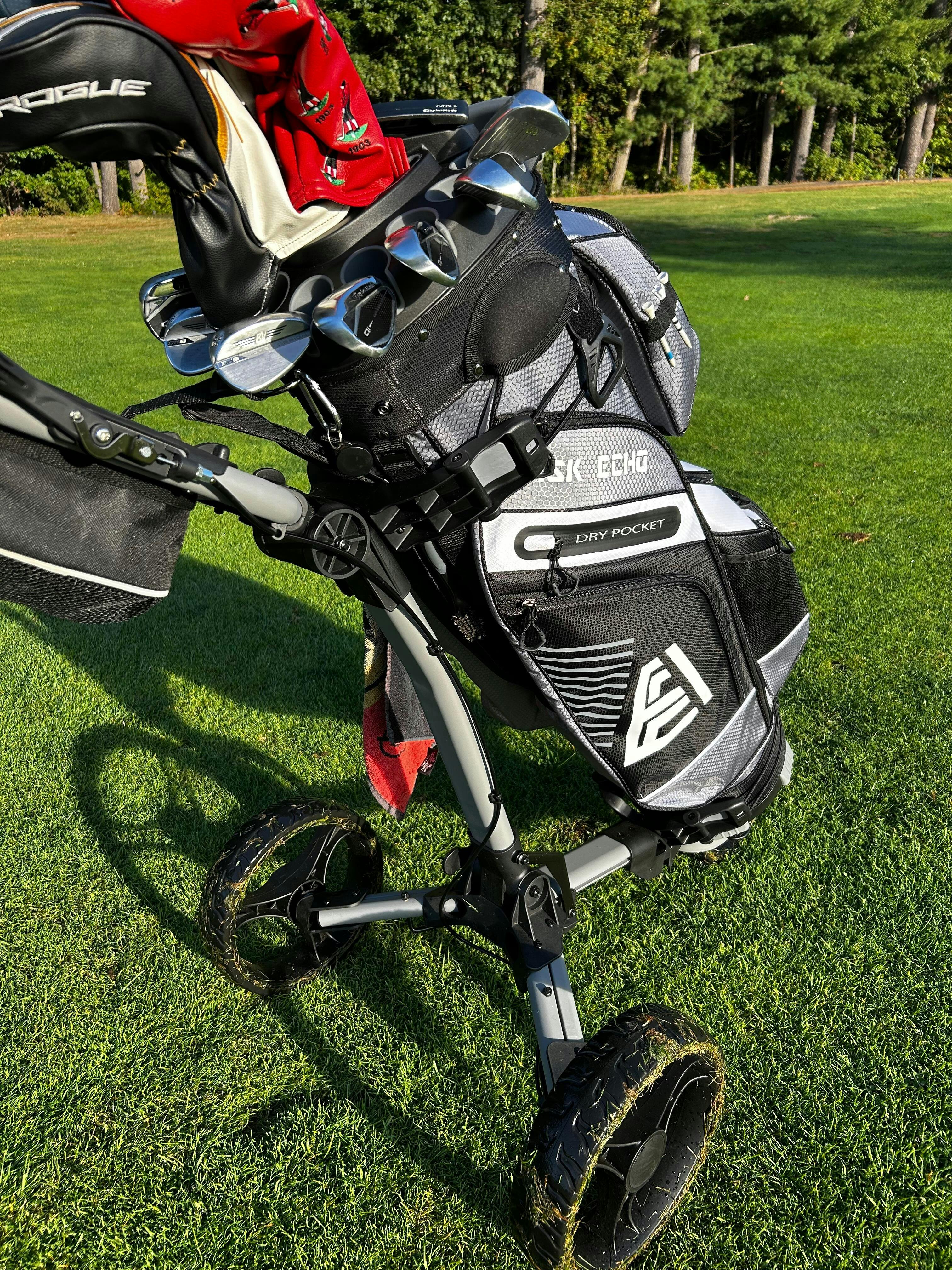 - With its innovative organizer top, keeps your clubs secure and soundless while you move around the course.